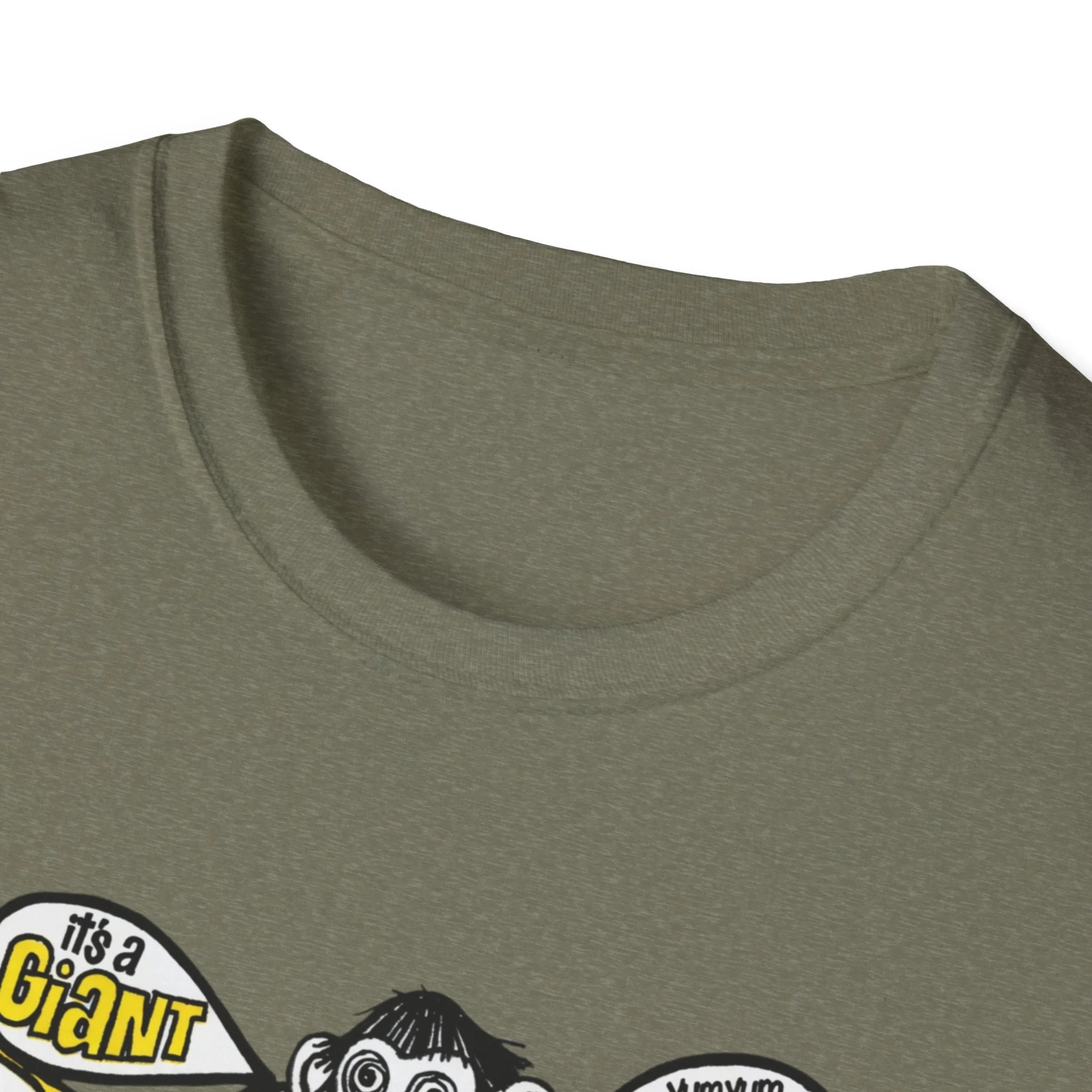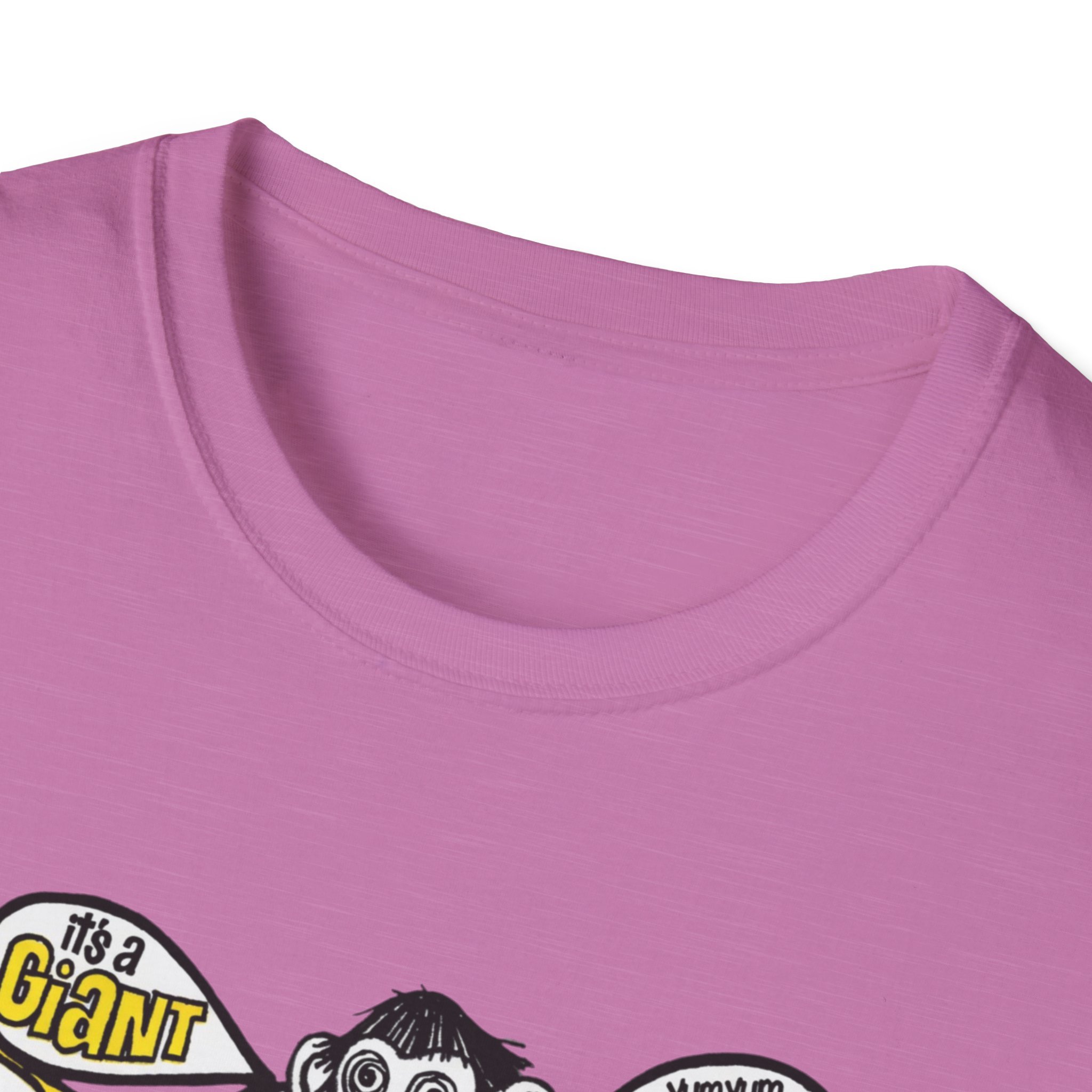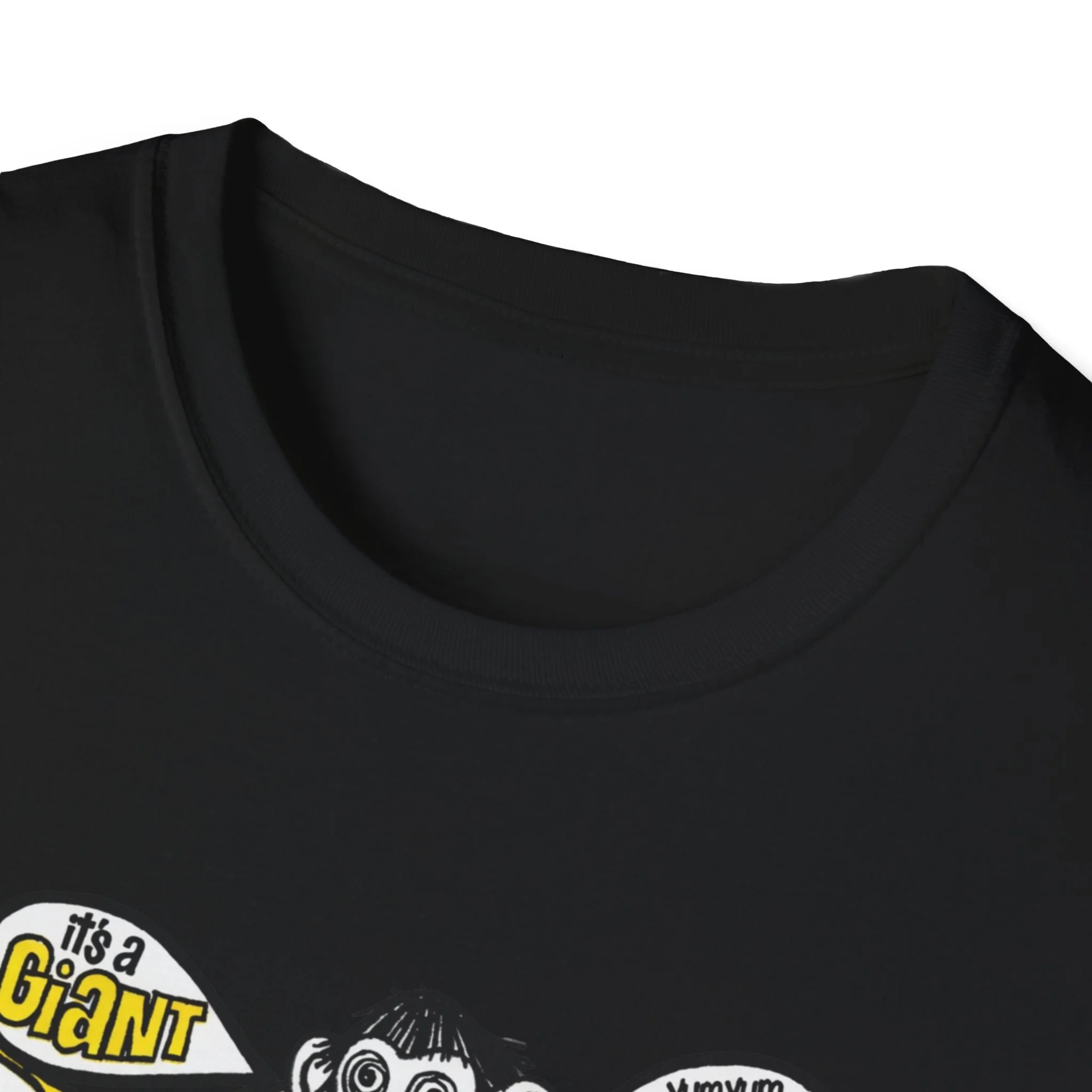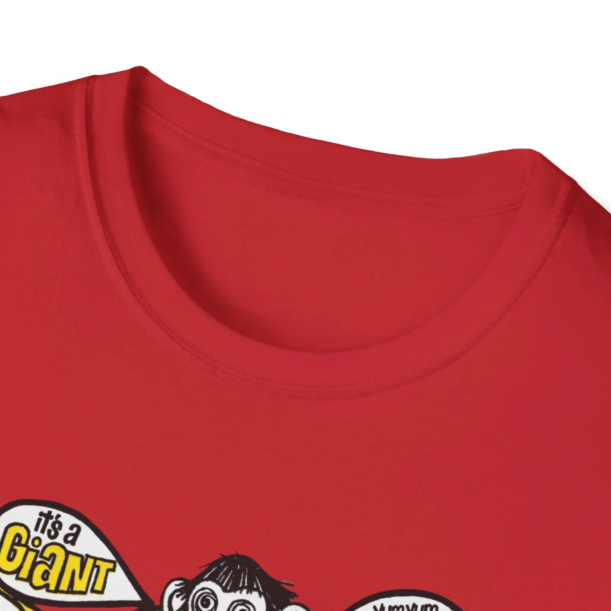 Peel back the good times! Remember the absolute thrill of spotting that giant banana-shaped pack of Big BaNaNa bubble gum on the candy rack? With its cheeky monkey mascot peeking out, tongue out, and those hilarious speech bubbles promising “It’s a Giant” and “Jumpin’ Sweet! Juicy!”, this was the king of sugar-sweet, stretchy bubble gum that delivered pure fruity fun in every stick. This vibrant retro tee faithfully recreates the classic packaging in all its bold yellow, blue, and white glory — the big curved banana, the playful monkey, and the proud “sugar-sweet bubble gum” banner. It’s pure penny-candy nostalgia that instantly transports you back to the corner store, baseball card trades, and epic bubble-blowing contests. Soft, comfortable, and built for everyday wear (or your next gum-chewing marathon), this shirt is perfect for: