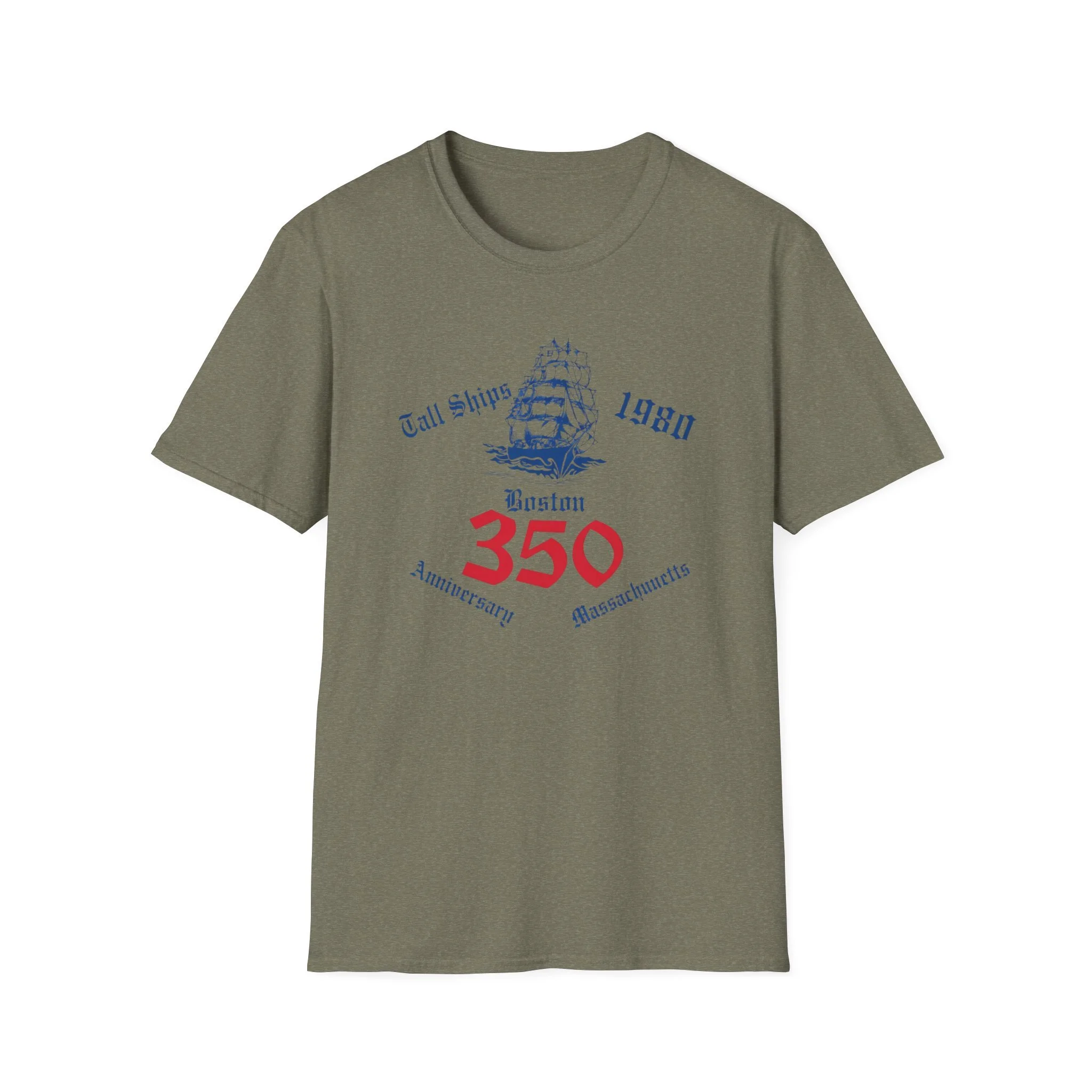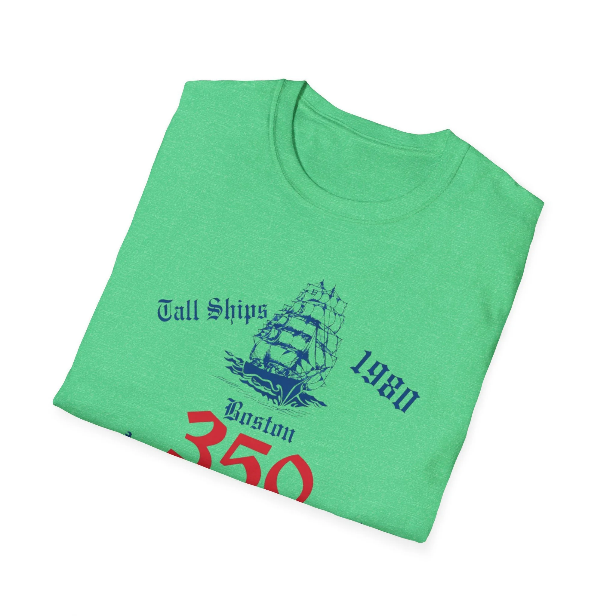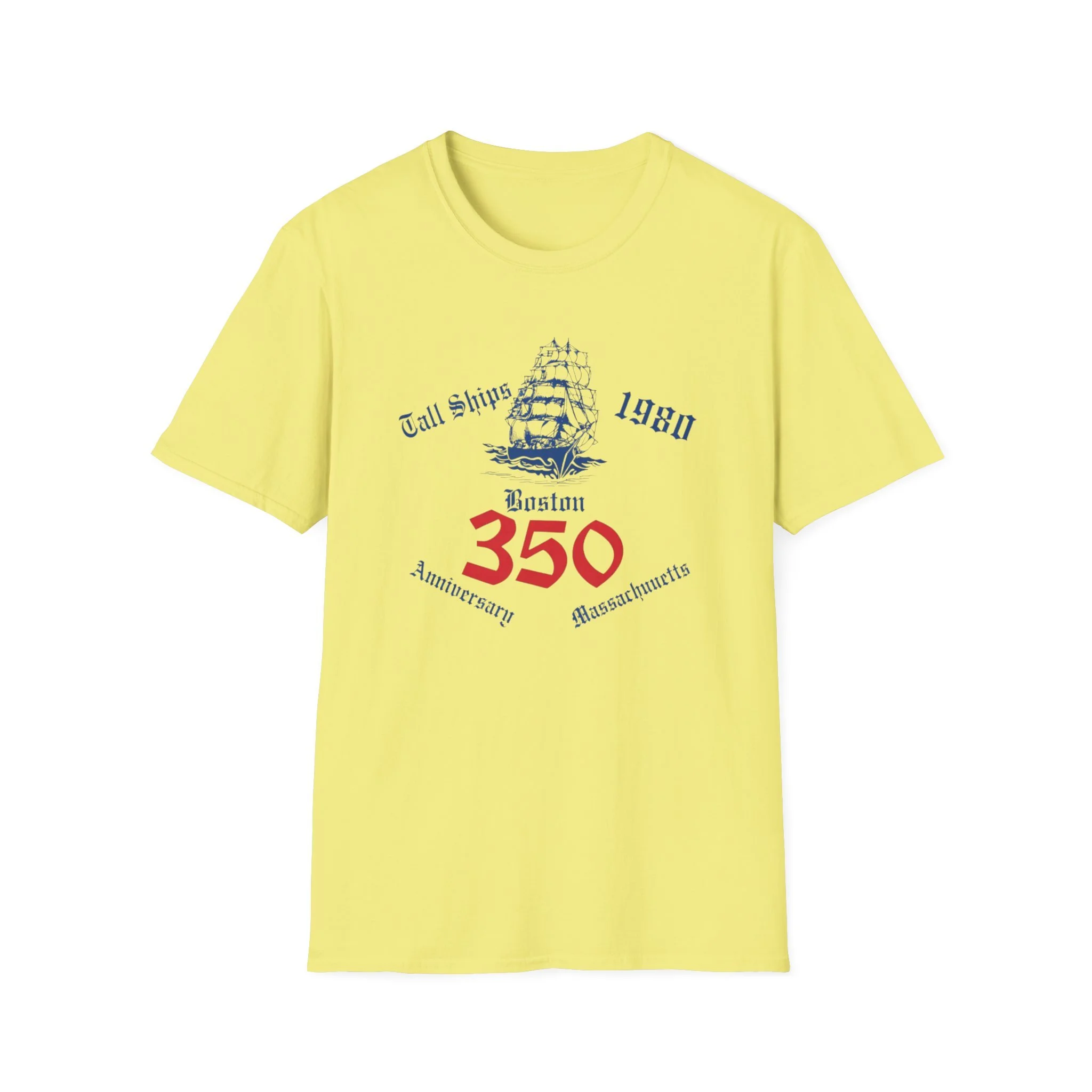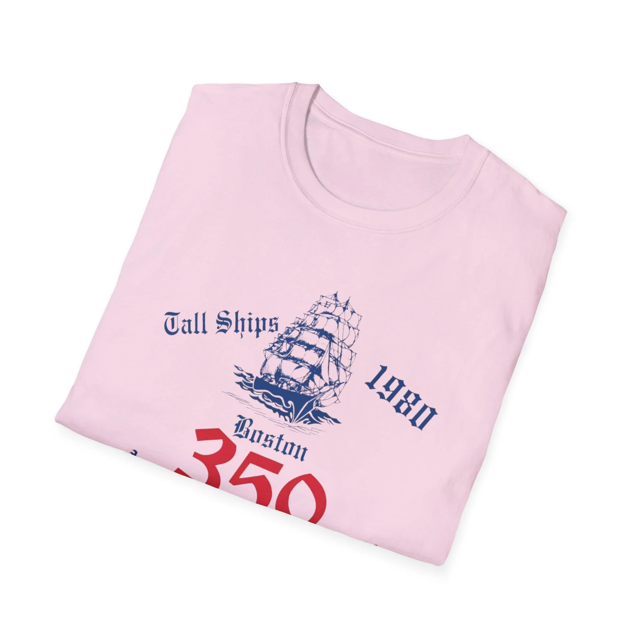 In 1980, Boston proudly celebrated its 350th anniversary with one of the most spectacular maritime events the city had ever seen — the Tall Ships 1980 gathering. As part of the international Operation Sail flotilla, dozens of majestic tall ships sailed into Boston Harbor, creating a breathtaking parade of sail that drew massive crowds to the waterfront. The event honored Boston’s rich seafaring history while marking the city’s milestone anniversary with fireworks, public tours, music, and harborfront festivities that turned the entire waterfront into a living celebration of Massachusetts maritime heritage. This t-shirt revives the classic 1980 Tall Ships / Boston 350 commemorative design with the elegant tall ship illustration, “Tall Ships 1980” arched above, the bold red “350” centerpiece, and “Boston Anniversary Massachusetts” framing the scene. Soft, breathable, and built for everyday wear — perfect for waterfront strolls, summer days in Boston, or proudly repping a piece of the city’s historic 350th anniversary. Wear it and spark those “I saw the tall ships in Boston Harbor in 1980!” stories from anyone who witnessed the majestic fleet or joined the waterfront celebrations that year.