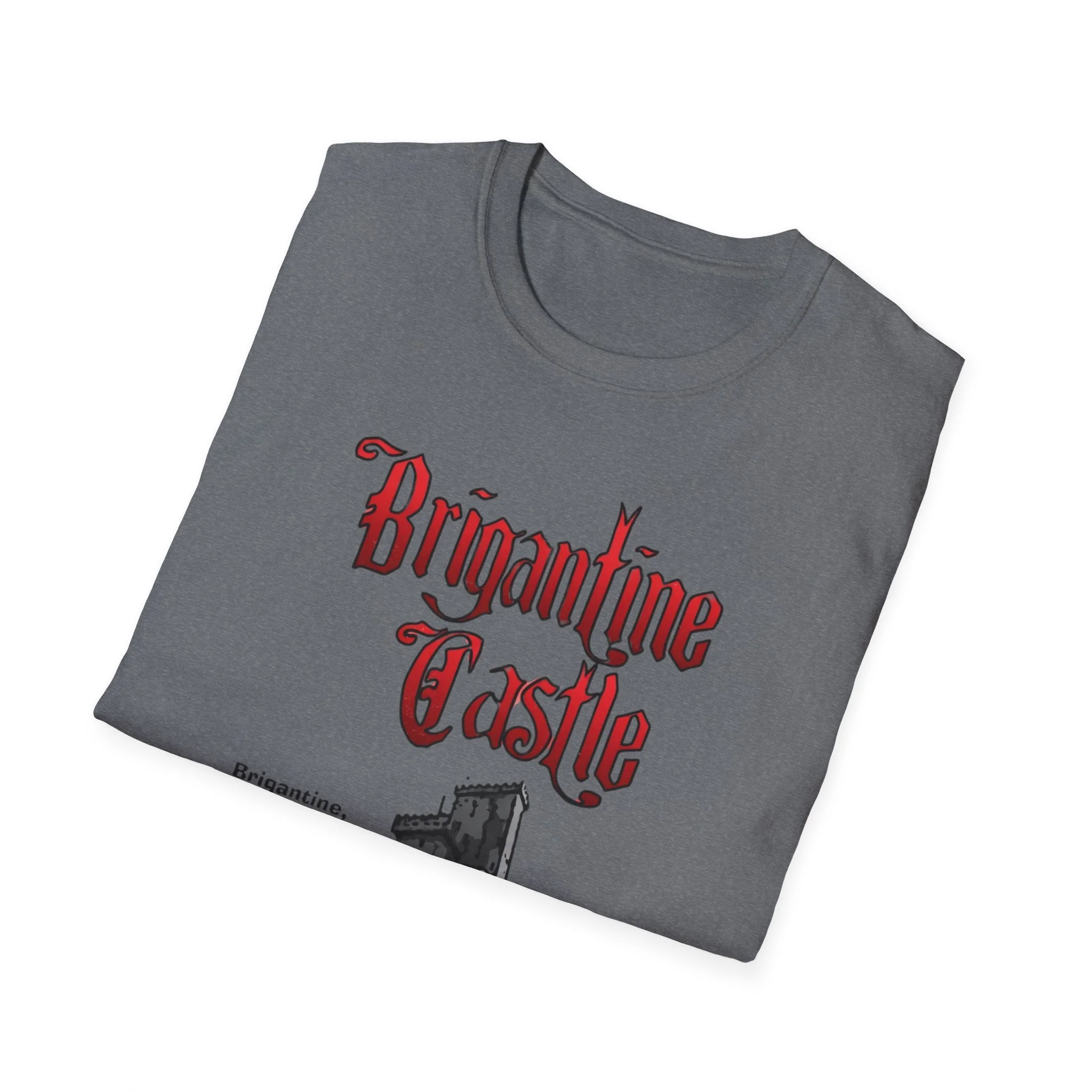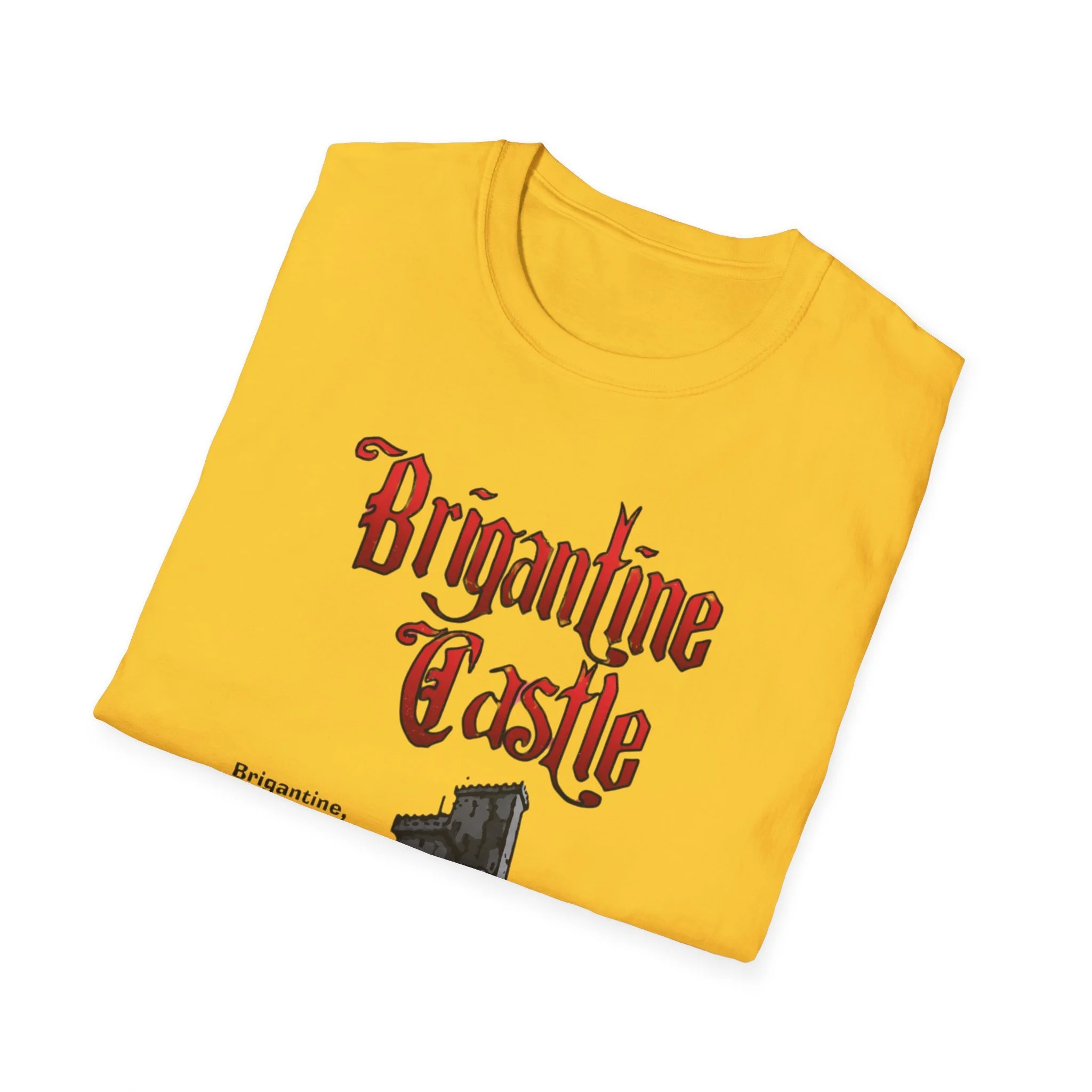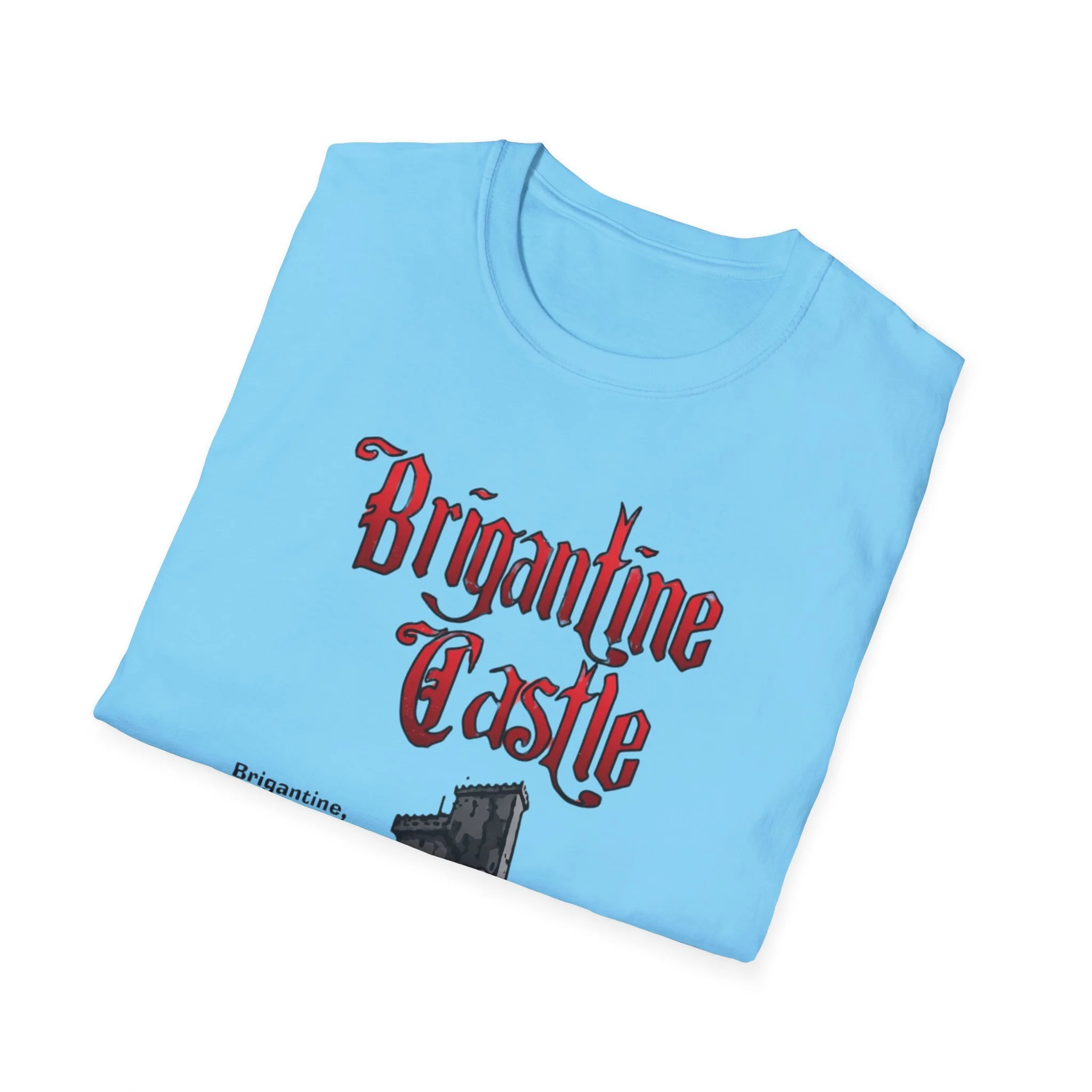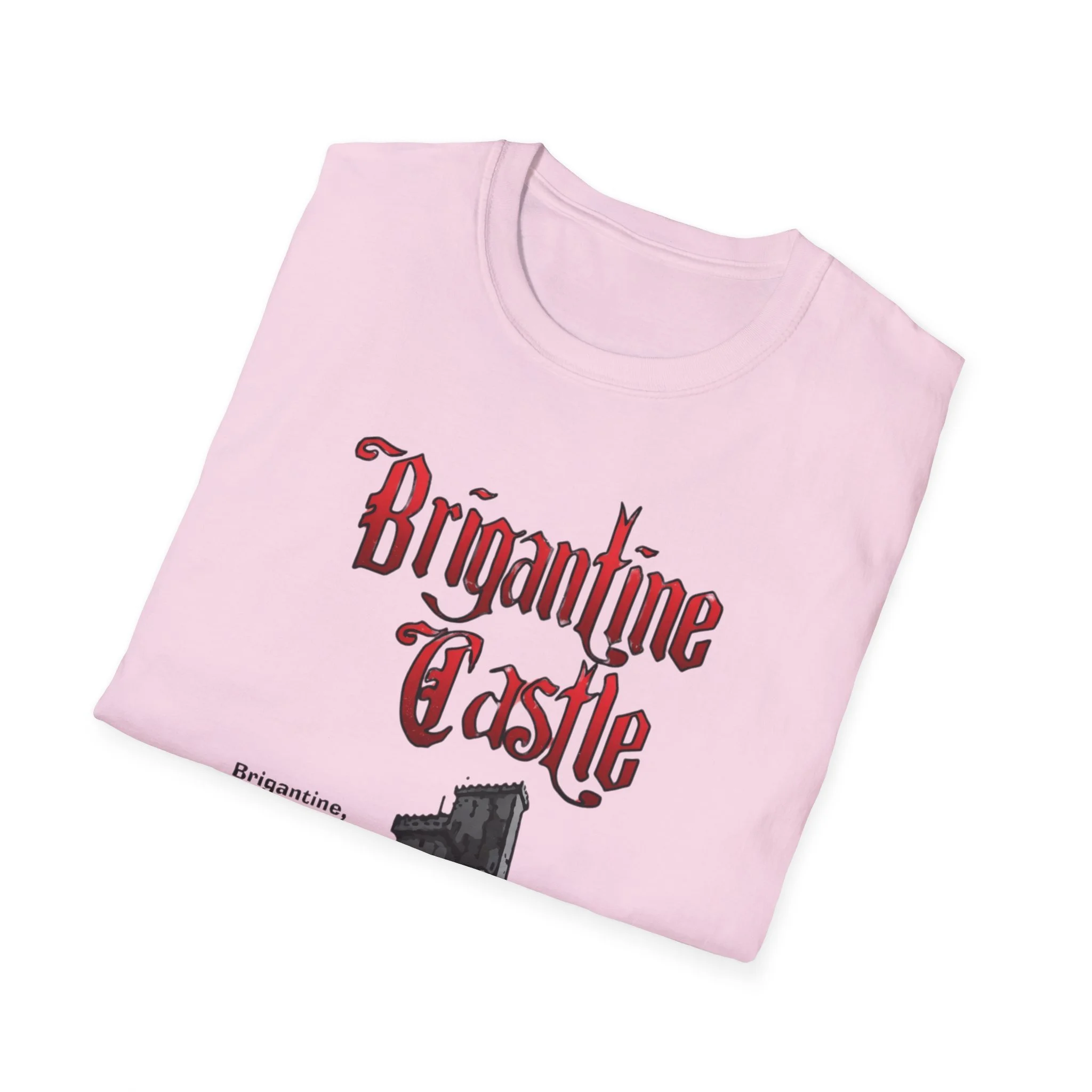 Perched right on the beach in Brigantine, New Jersey, Brigantine Castle was one of the wildest and most memorable haunted attractions on the Jersey Shore. Opened in the mid-1970s, this towering gothic castle delivered chills and thrills with its dark corridors, live actors, animatronics, fog machines, and over-the-top horror effects. For nearly two decades, families and thrill-seekers braved the haunted halls, screaming their way through the dungeon, graveyard, and twisting passages before emerging back into the bright Atlantic City-area sunlight. It became a true seasonal landmark for anyone looking for something scarier than standard boardwalk rides. This t-shirt brings the classic Brigantine Castle back to life with the bold, gothic red “Brigantine Castle” lettering and the detailed illustration of the dark, foreboding castle rising from the water. Soft, breathable, and built for everyday wear — perfect for summer nights on the Shore, Halloween season, or just repping one of New Jersey’s most unforgettable lost attractions. Wear it and spark those “I remember getting scared out of my mind at Brigantine Castle!” stories from anyone who ever dared to enter the castle on Brigantine Beach.
