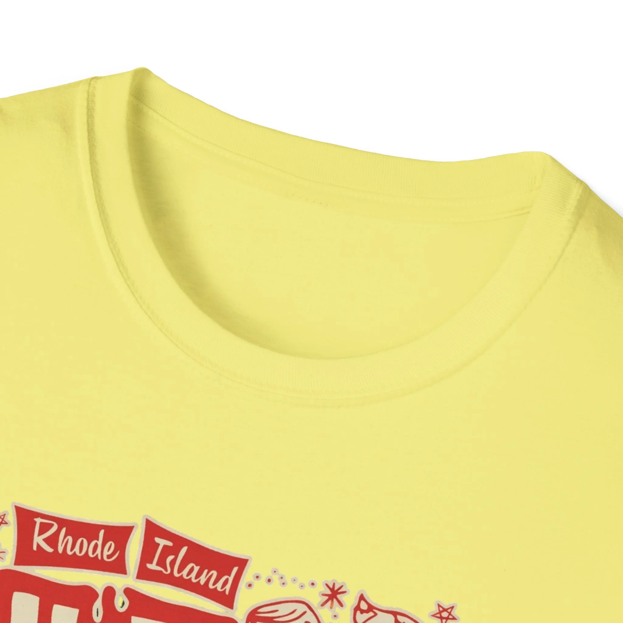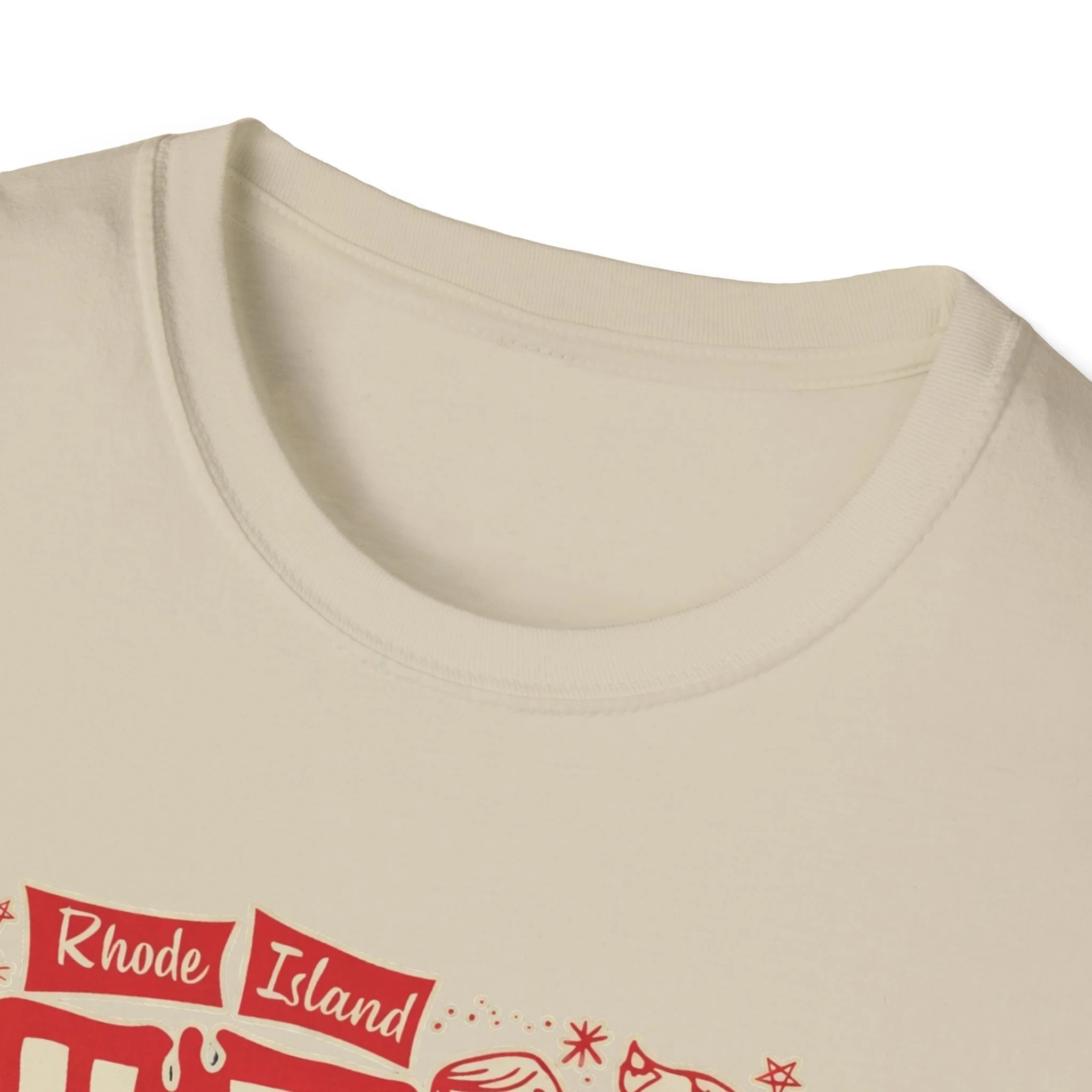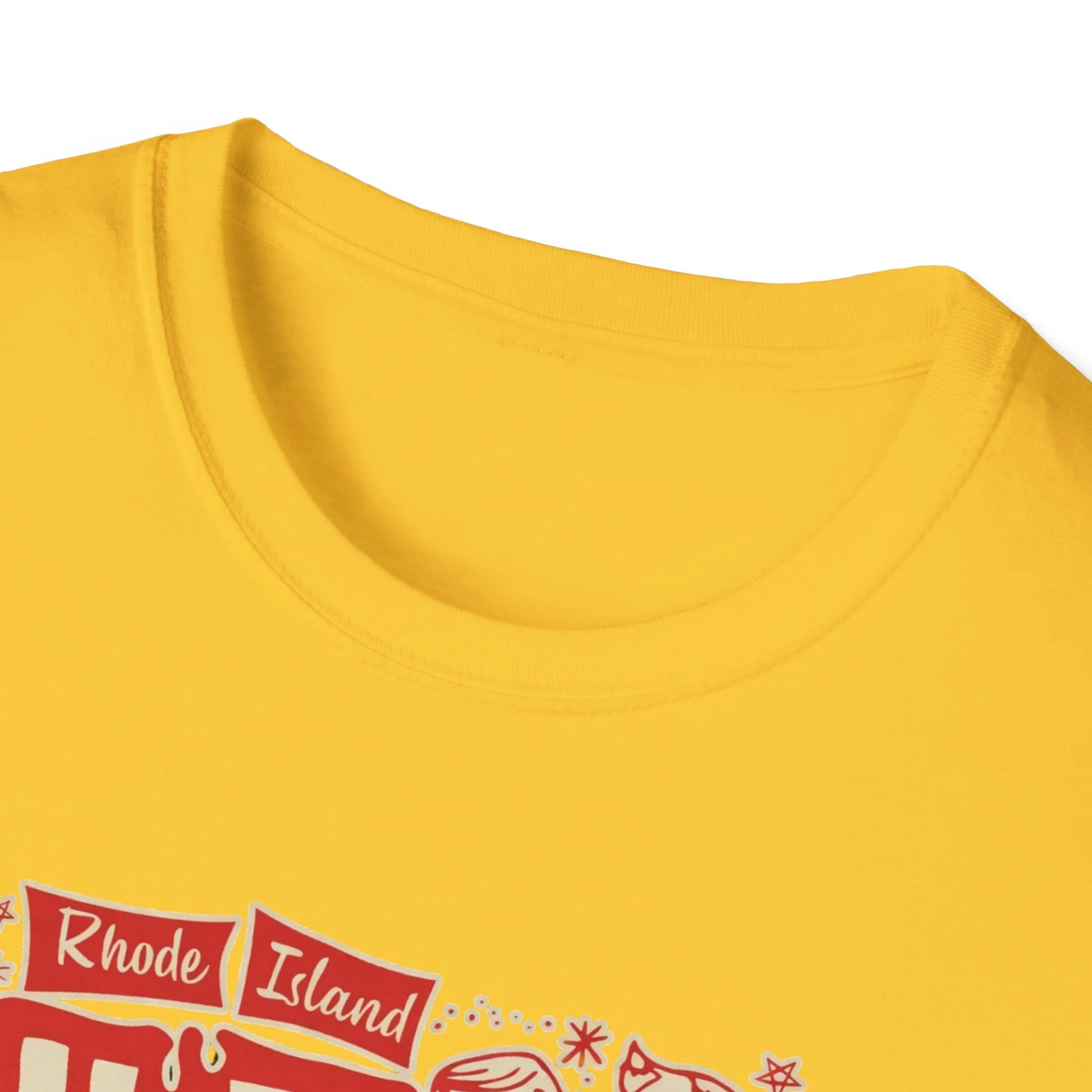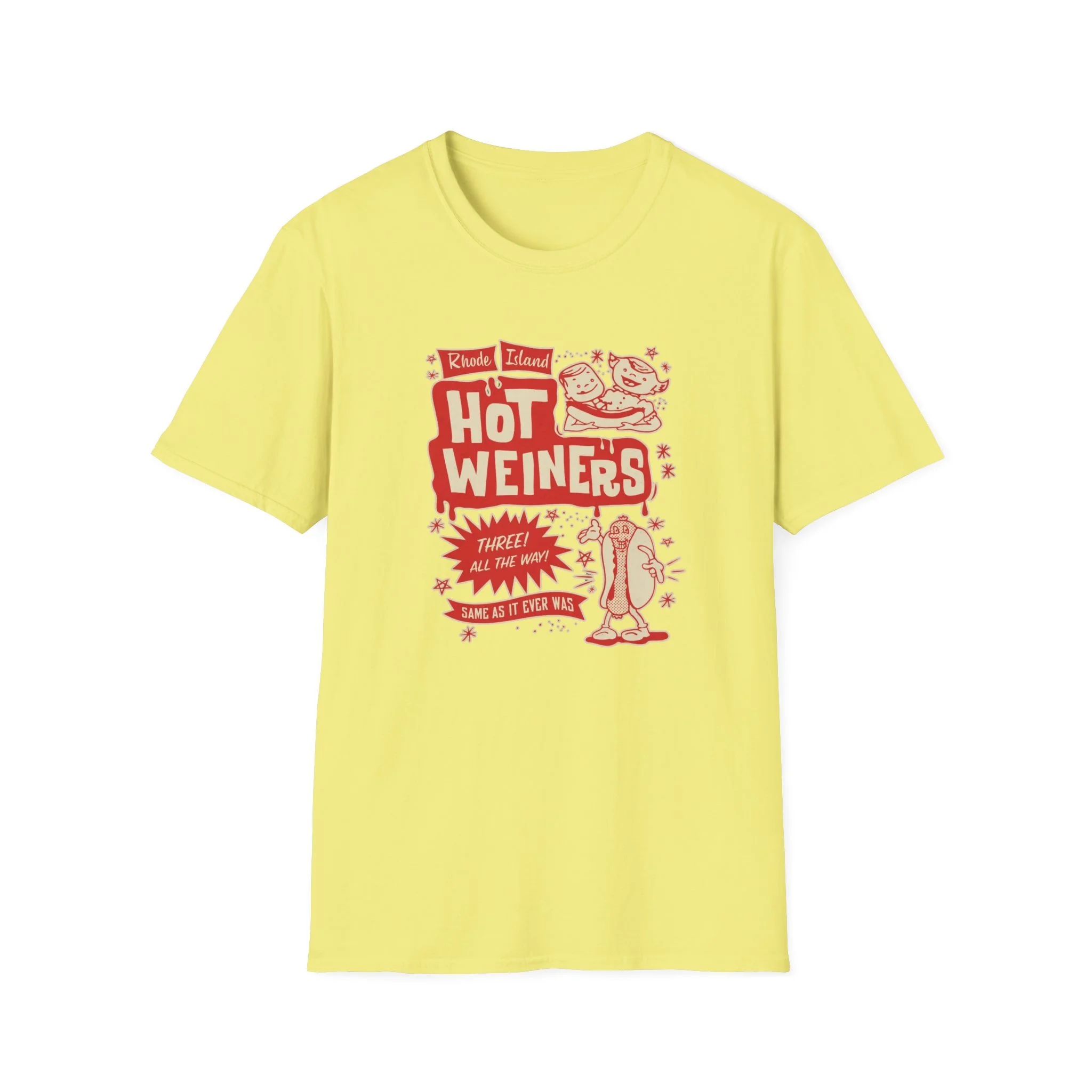 Not just any hot dog — we’re talking those snappy little links smothered in meat sauce, mustard, and chopped onions, served up with that famous “three all the way” call from the counter. This vibrant retro tee brings back the beloved Rhode Island hot weiner stand vibes with its bold red-and-cream design featuring the smiling weiner characters, the dripping “HOT WEINERS” lettering, and the proud banner declaring “SAME AS IT EVER WAS.” It’s pure Ocean State comfort food nostalgia — the kind that makes your mouth water and your memories flood back the second you see it. Soft, comfortable, and built for everyday wear (or your next trip to the weiner joint), this shirt is perfect for: