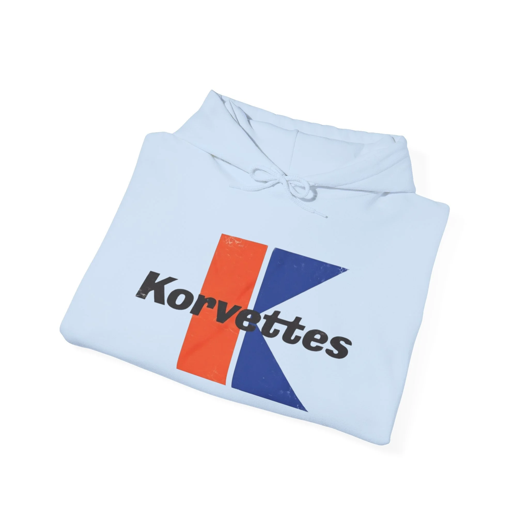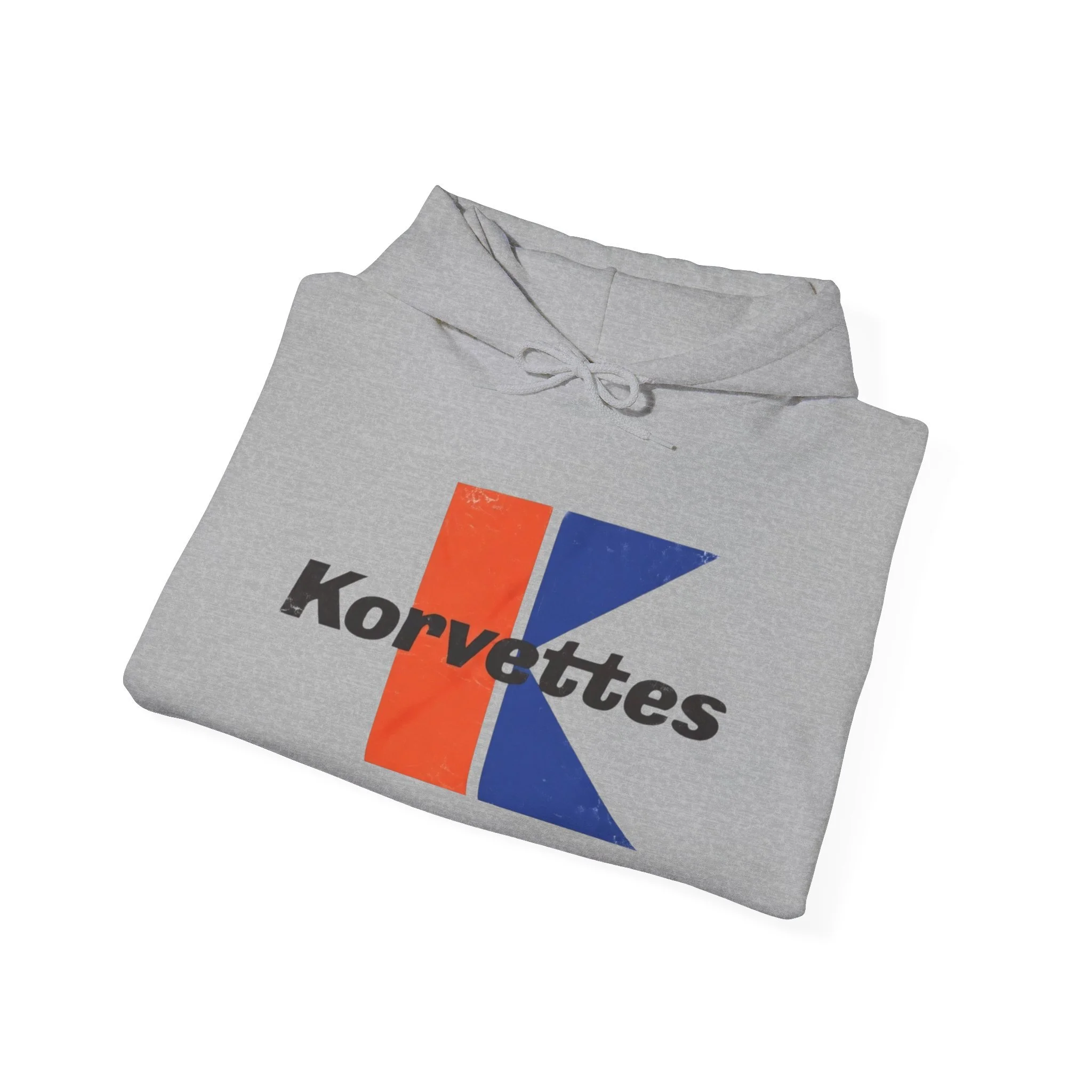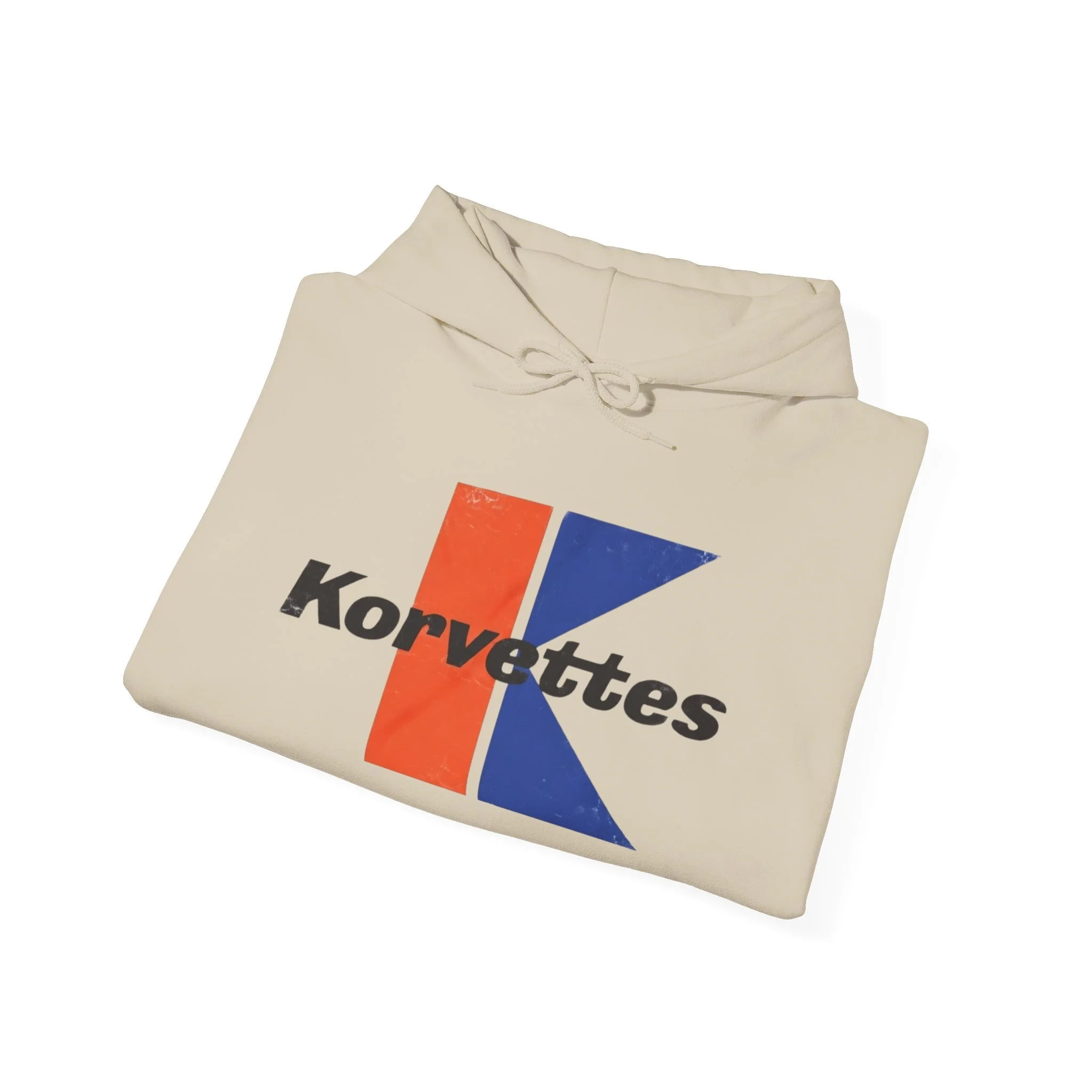 Attention, Northeast bargain hunters! From the 1950s through the late 1970s, E.J. Korvette (better known simply as Korvettes) was one of the most exciting and pioneering discount department stores in the country. With its bold “Korvettes” logo featuring that iconic split orange-and-blue “K,” the chain revolutionized retail with low prices on everything from TVs and stereos to clothing, appliances, and records. Locations across New York, New Jersey, Pennsylvania, Connecticut, and beyond became weekend destinations for families hunting for deals in the golden age of discount shopping. This heather gray hoodie brings the classic Korvettes branding back in full retro glory: the striking orange-and-blue “K” logo paired with the clean black “Korvettes” script. Ultra-cozy mid-weight fleece with a roomy kangaroo pocket — perfect for crisp fall days, weekend errands, or just repping one of the Northeast’s most legendary (and missed) discount chains in comfort. Wear it proud and spark those “I used to shop at Korvettes every weekend!” stories from fellow locals who still remember the unbeatable prices and bustling stores.