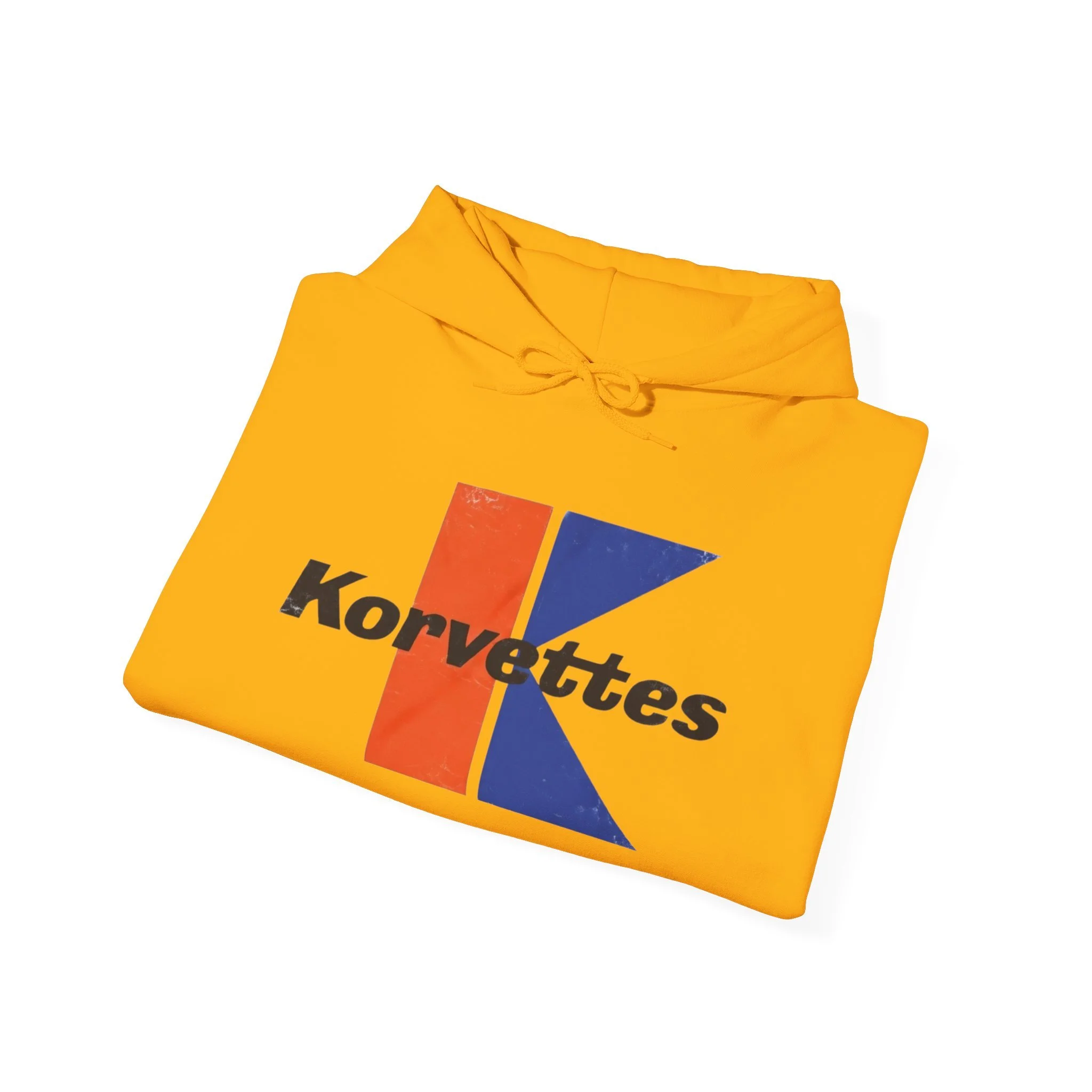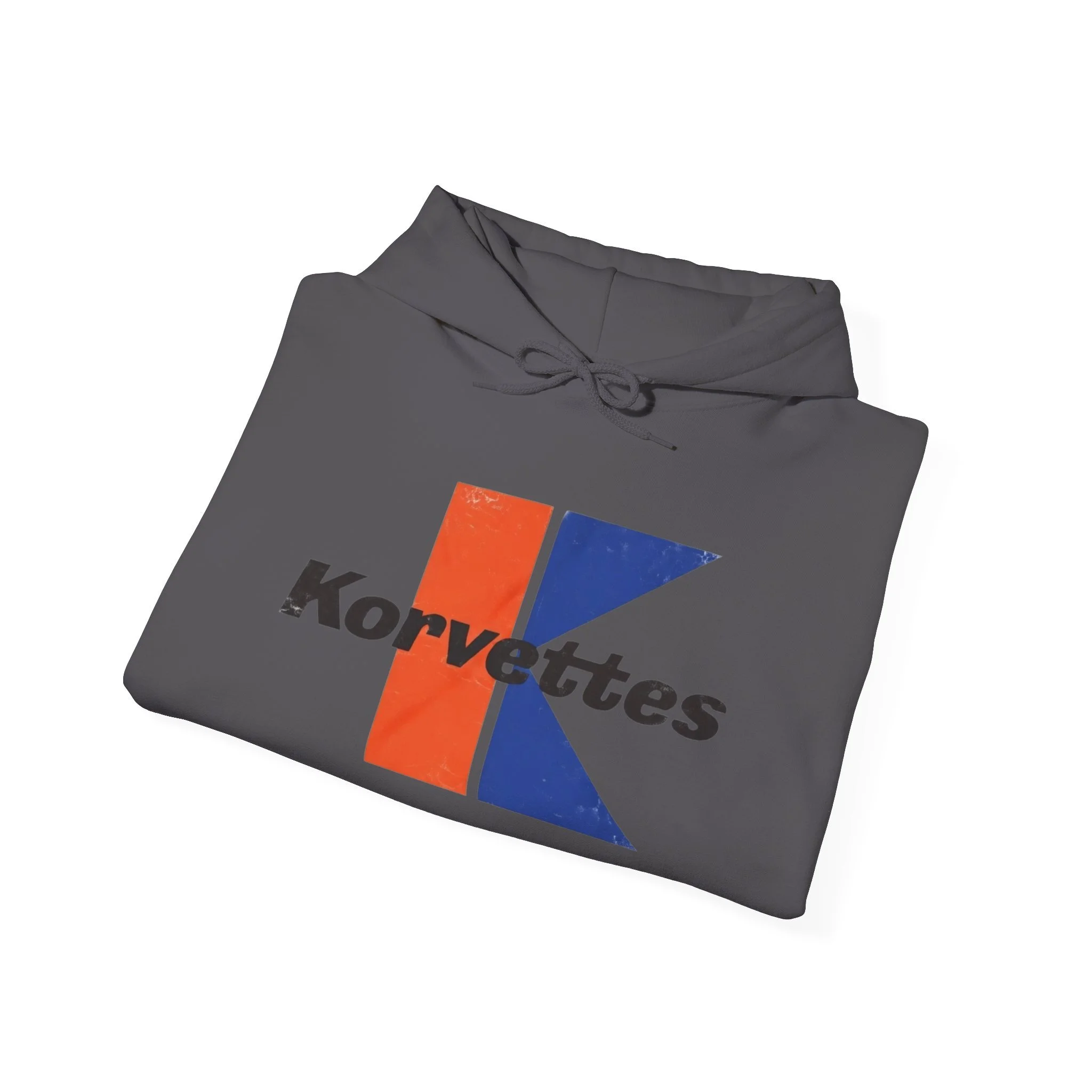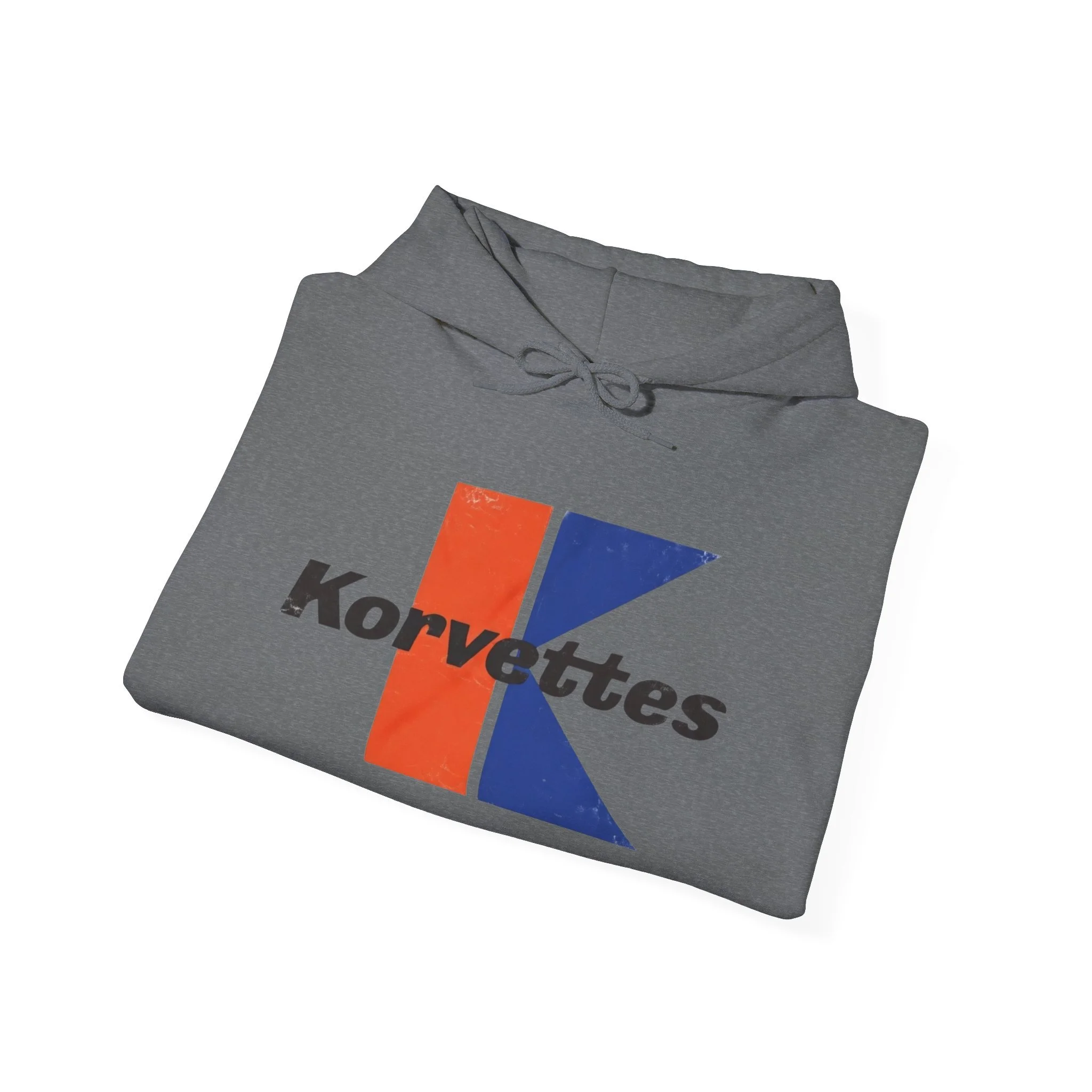 Attention, Northeast bargain hunters! From the 1950s through the late 1970s, E.J. Korvette (better known simply as Korvettes) was one of the most exciting and pioneering discount department stores in the country. With its bold “Korvettes” logo featuring that iconic split orange-and-blue “K,” the chain revolutionized retail with low prices on everything from TVs and stereos to clothing, appliances, and records. Locations across New York, New Jersey, Pennsylvania, Connecticut, and beyond became weekend destinations for families hunting for deals in the golden age of discount shopping. This heather gray hoodie brings the classic Korvettes branding back in full retro glory: the striking orange-and-blue “K” logo paired with the clean black “Korvettes” script. Ultra-cozy mid-weight fleece with a roomy kangaroo pocket — perfect for crisp fall days, weekend errands, or just repping one of the Northeast’s most legendary (and missed) discount chains in comfort. Wear it proud and spark those “I used to shop at Korvettes every weekend!” stories from fellow locals who still remember the unbeatable prices and bustling stores.