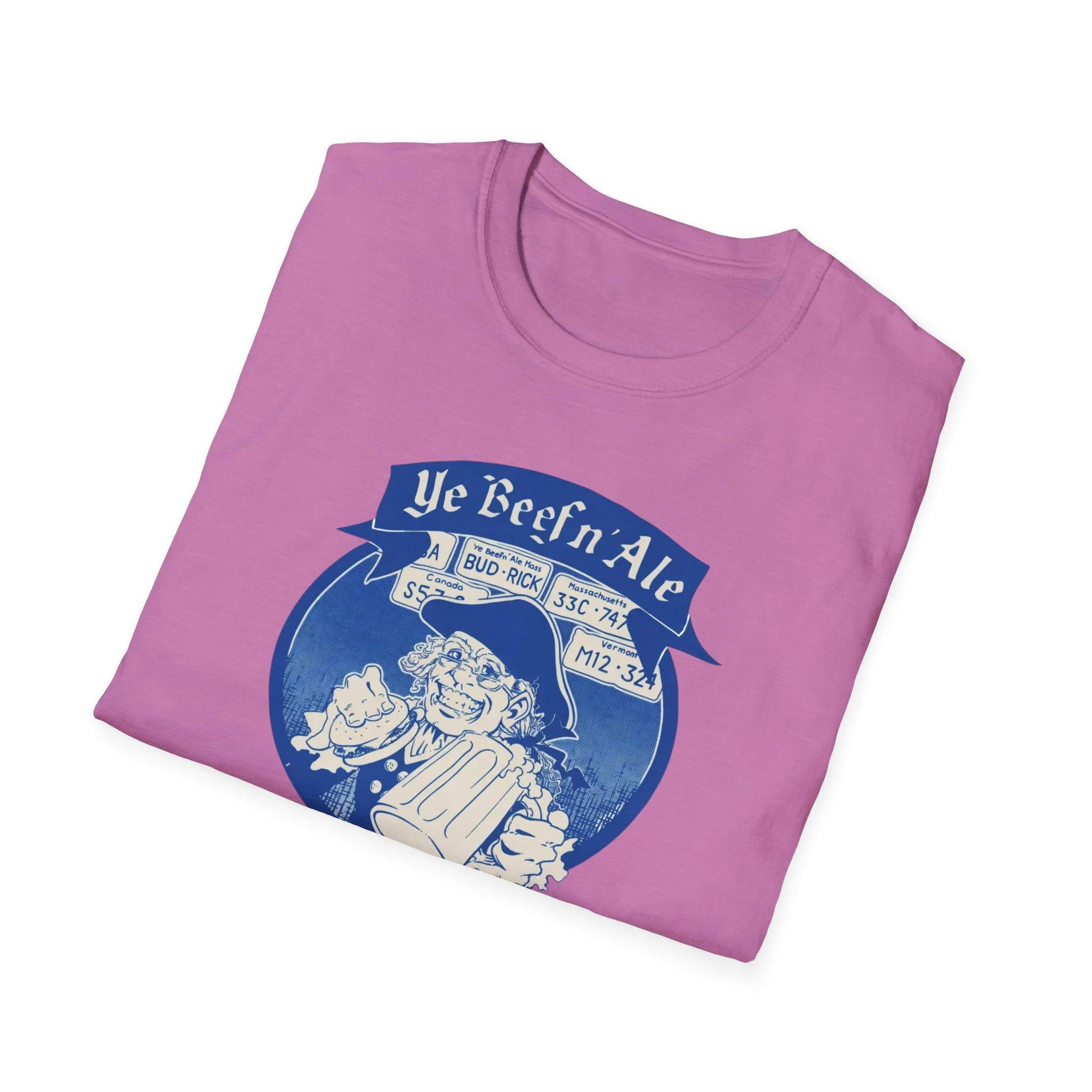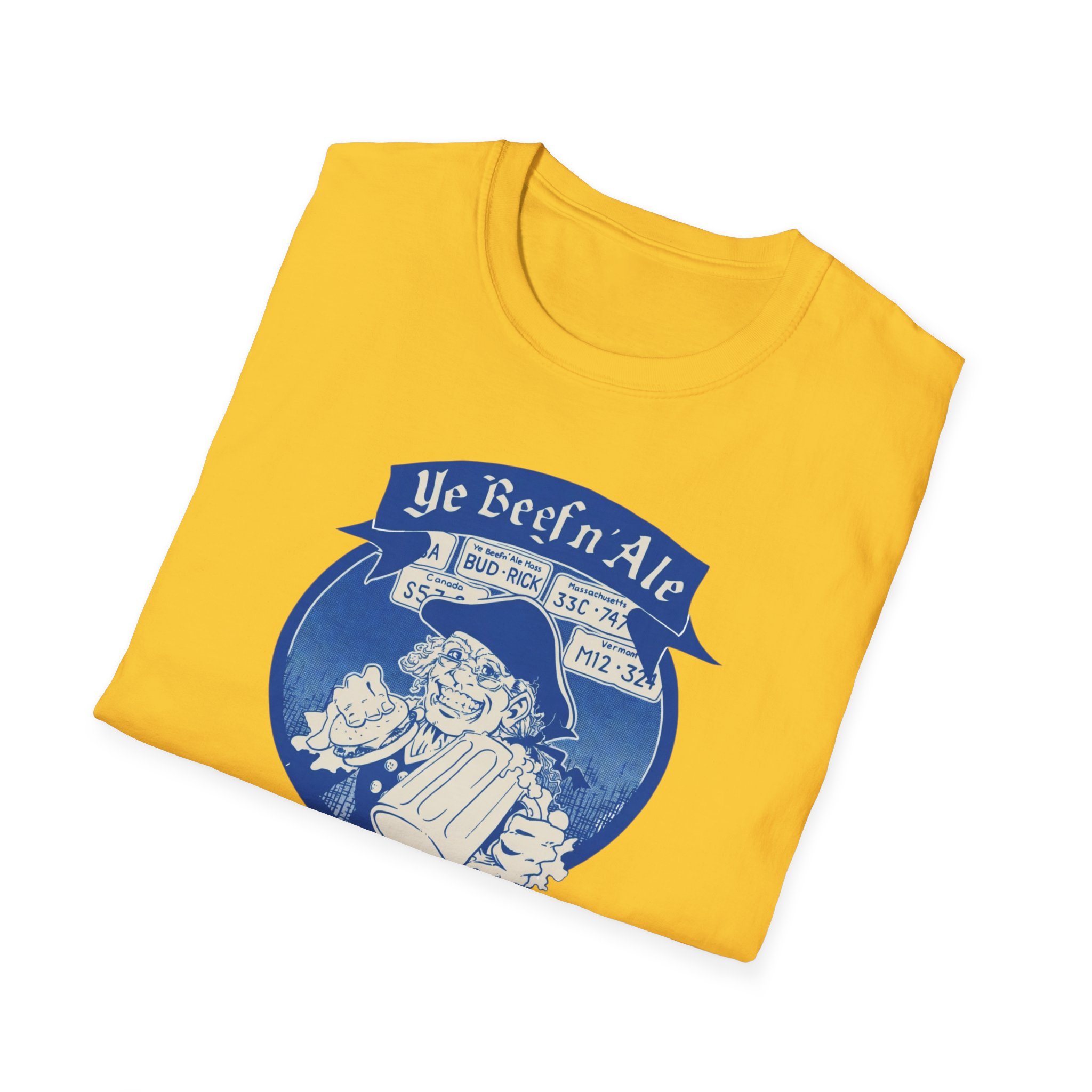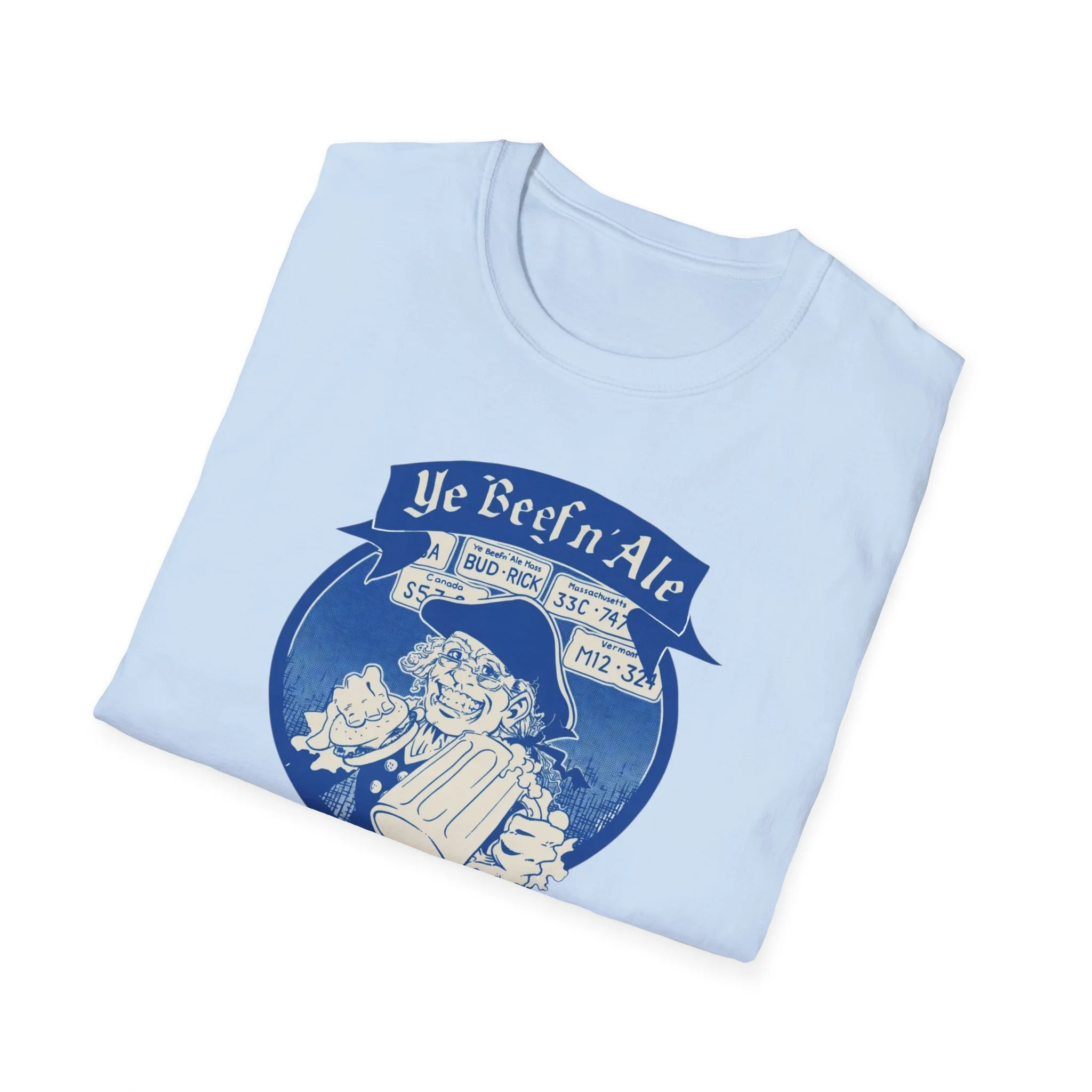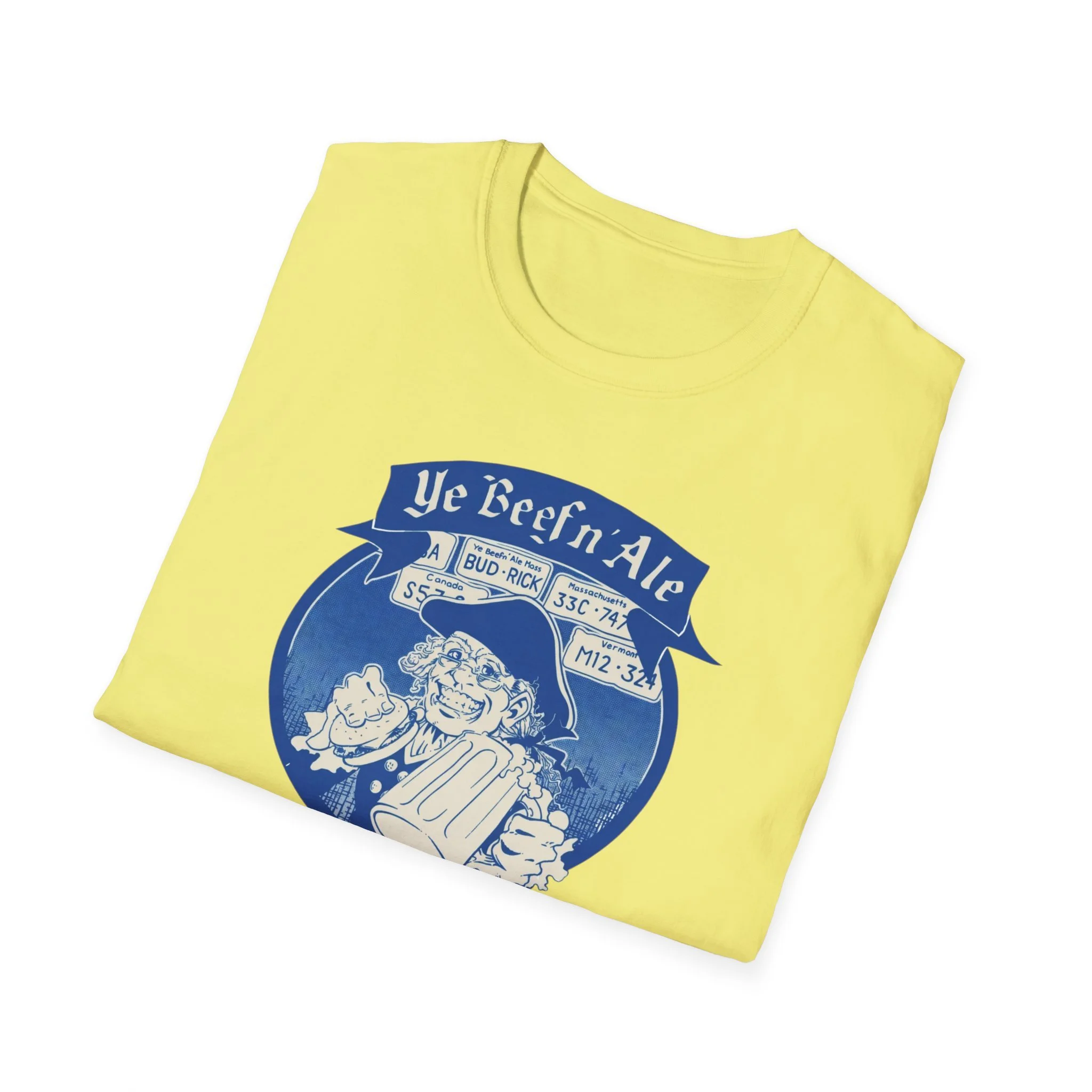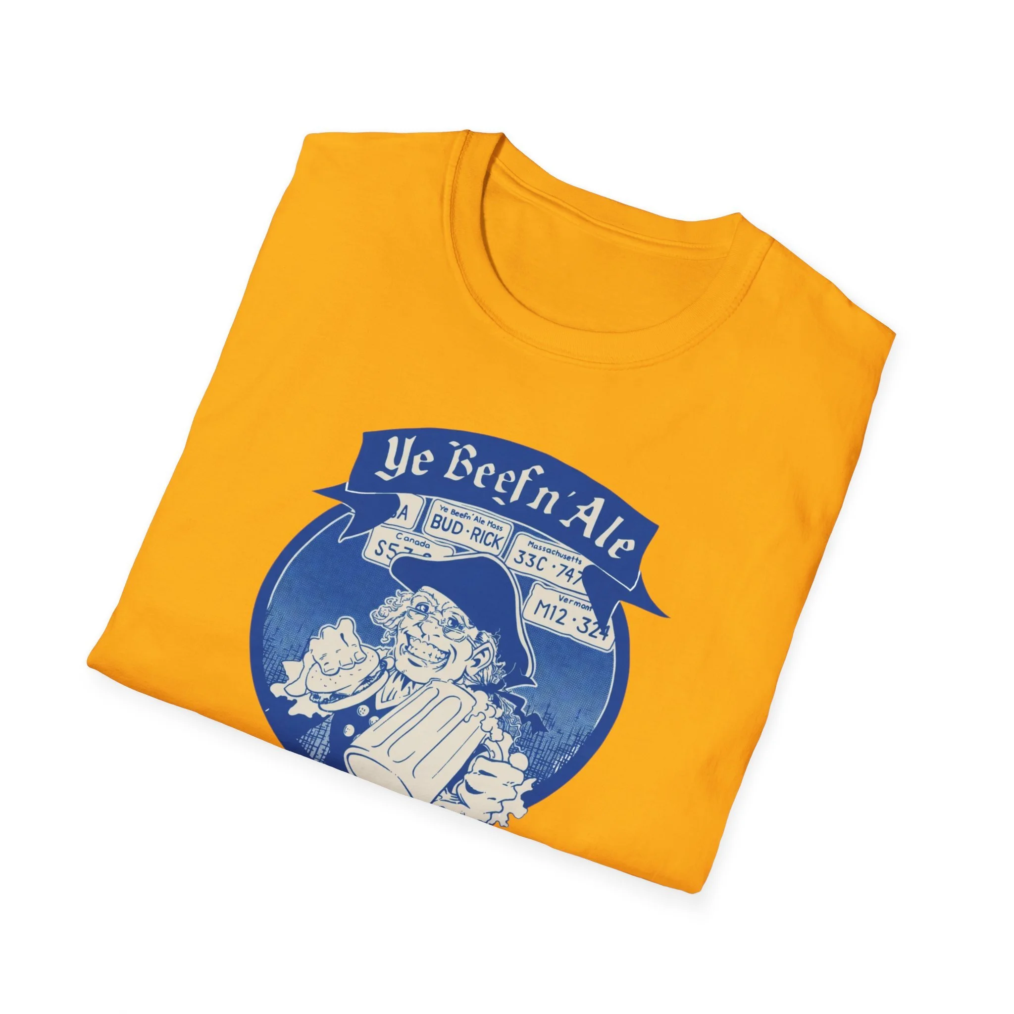 For decades, Ye Beef 'n' Ale in Acton, Massachusetts, was a beloved local gathering spot where good friends truly did meet. With its friendly gnome-like mascot cheerfully hoisting a frothy mug, vintage license plate accents, and the warm tagline “Where good friends meet!”, this classic pub and restaurant became a favorite for hearty meals, cold drinks, and that genuine neighborhood welcome. It captured the unpretentious, welcoming spirit of old-school New England dining at its best. This t-shirt faithfully revives the classic Ye Beef 'n' Ale branding with the smiling character, the bold blue banner “Ye Beef 'n' Ale,” the surrounding license plate details, and the heartfelt “Where good friends meet!” slogan with “Acton MA” below. Soft, breathable, and built for everyday wear — perfect for former regulars, Acton locals, or anyone who appreciates a slice of genuine Massachusetts pub nostalgia. Wear it and spark those “Remember going to Ye Beef 'n' Ale?” stories from anyone who ever enjoyed a meal or a pint where good friends met in Acton.