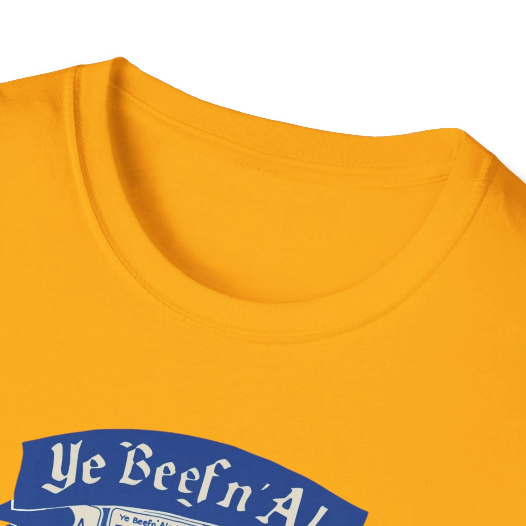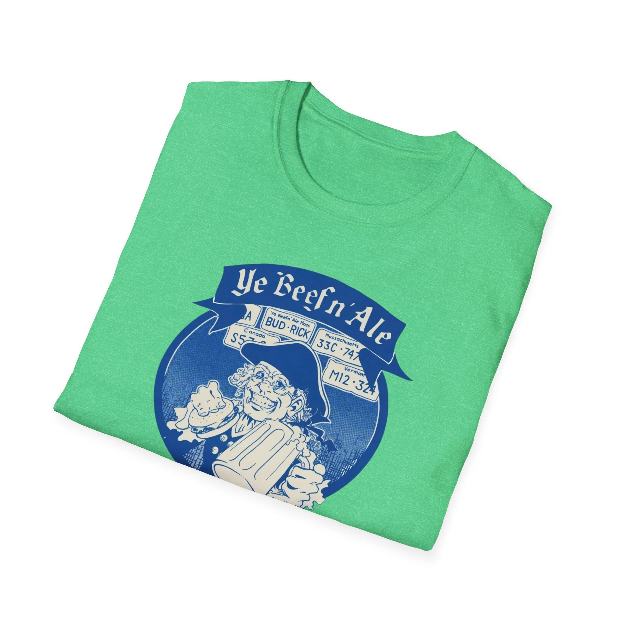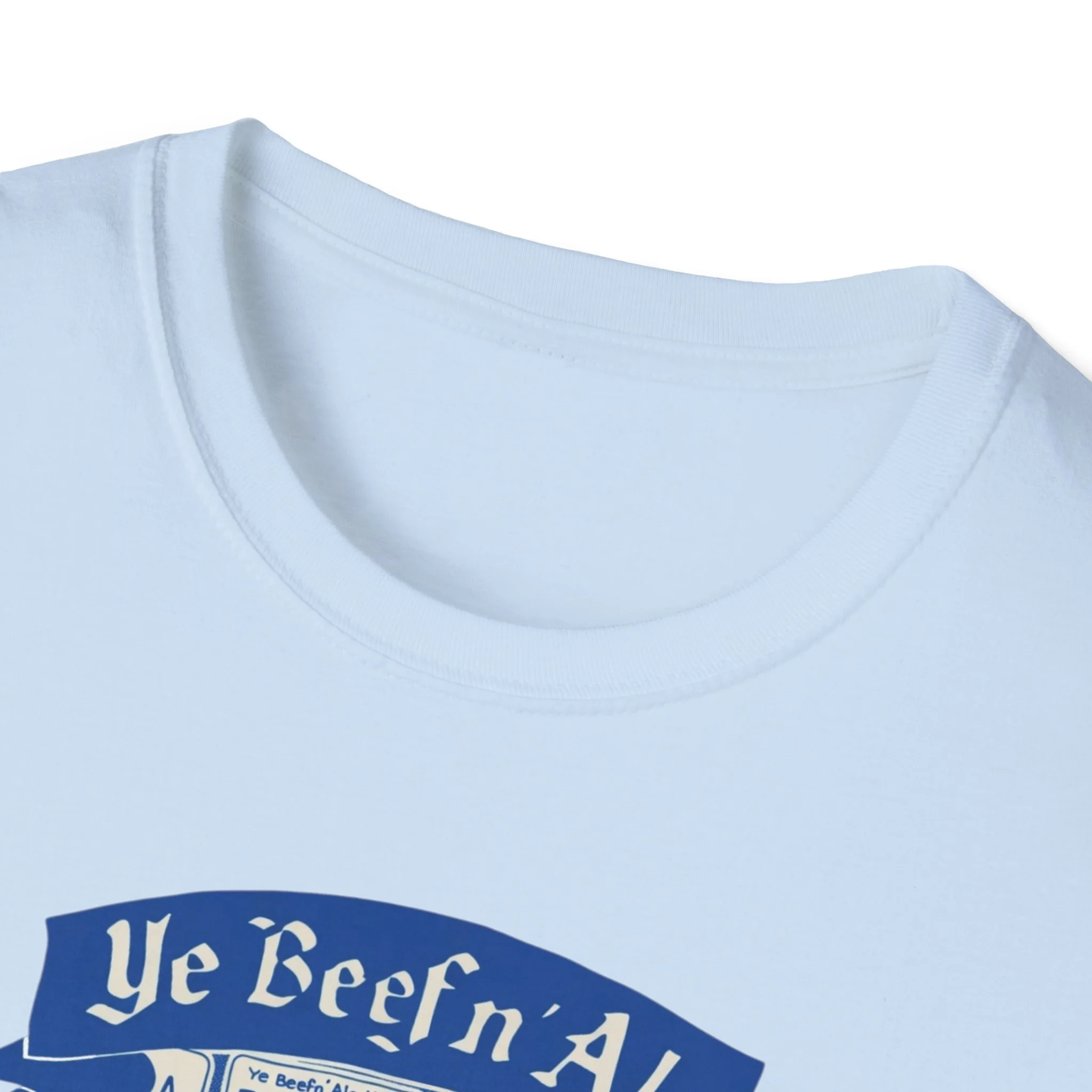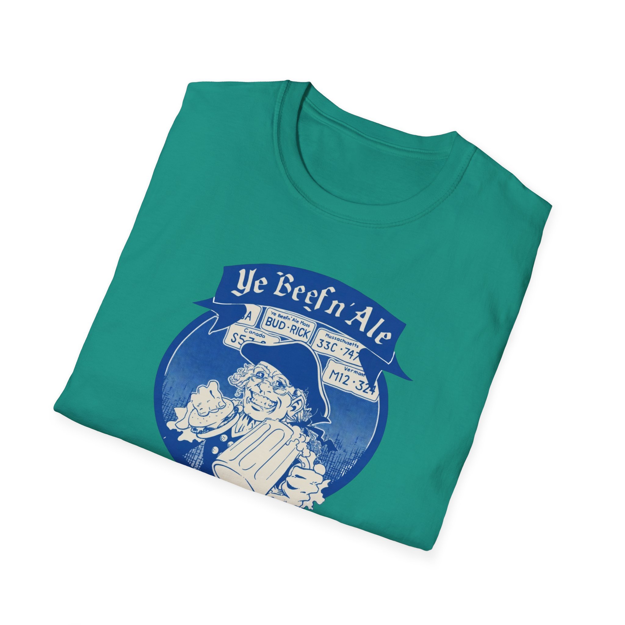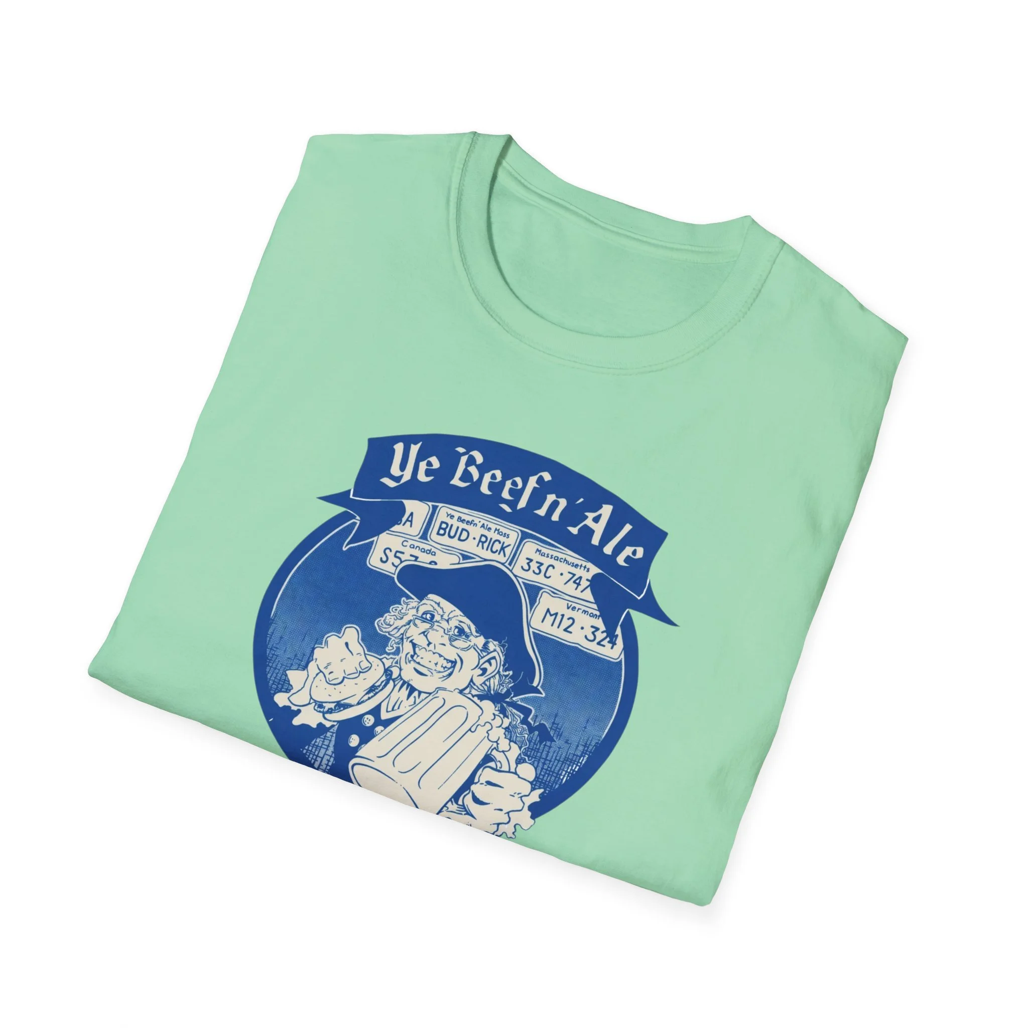 For decades, Ye Beef 'n' Ale in Acton, Massachusetts, was a beloved local gathering spot where good friends truly did meet. With its friendly gnome-like mascot cheerfully hoisting a frothy mug, vintage license plate accents, and the warm tagline “Where good friends meet!”, this classic pub and restaurant became a favorite for hearty meals, cold drinks, and that genuine neighborhood welcome. It captured the unpretentious, welcoming spirit of old-school New England dining at its best. This t-shirt faithfully revives the classic Ye Beef 'n' Ale branding with the smiling character, the bold blue banner “Ye Beef 'n' Ale,” the surrounding license plate details, and the heartfelt “Where good friends meet!” slogan with “Acton MA” below. Soft, breathable, and built for everyday wear — perfect for former regulars, Acton locals, or anyone who appreciates a slice of genuine Massachusetts pub nostalgia. Wear it and spark those “Remember going to Ye Beef 'n' Ale?” stories from anyone who ever enjoyed a meal or a pint where good friends met in Acton.